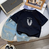 تیشرت نخ پنبه و شلوارک جین زاپدار